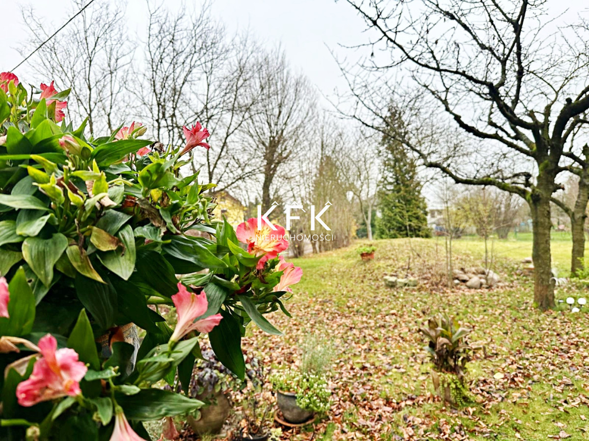 teren działki porośnięty jest roślinnością ozdobną, drzewami oraz krzewami