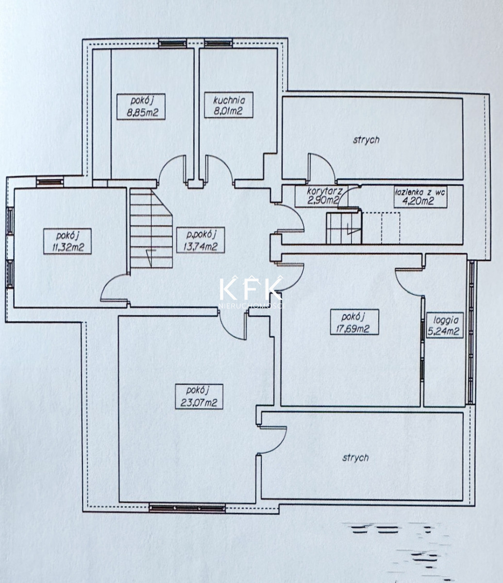 załączono zdjęcia drugiej kondygnacji oraz rzuty nieruchomości